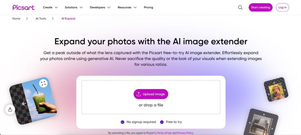 Perfect for social media creators and product photographers, Picsart’s AI Image Extender expands your images without stretching pixels. It’s ideal for turning tight crops into platform-ready visuals in seconds.