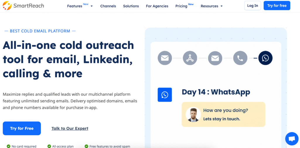 Founded in 2018, SmartReach.io has built its reputation around reliable deliverability, multichannel capabilities, and features that help agencies, startups, and enterprises manage outreach at scale.