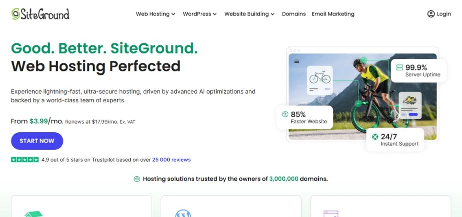 SiteGround is one of the greatest web host companies with outstanding performance in technology advancement, customer care, and WordPress hosting solutions. Originating from performance and uptime, SiteGround has become one of the best hosting providers to be recommended to website owners and creators. Their shared, cloud, and managed WordPress hosting are designed to perform with inbuilt caching, free CDN, and automatic updates for making sites fast. SiteGround is a top choice among WooCommerce Hosting Providers.