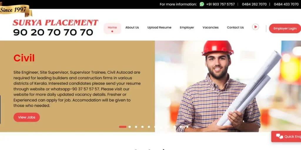 | 7 | Surya Placement | Local recruitment | Manufacturing, Retail, IT | Kochi & nearby districts | Fast local hiring |